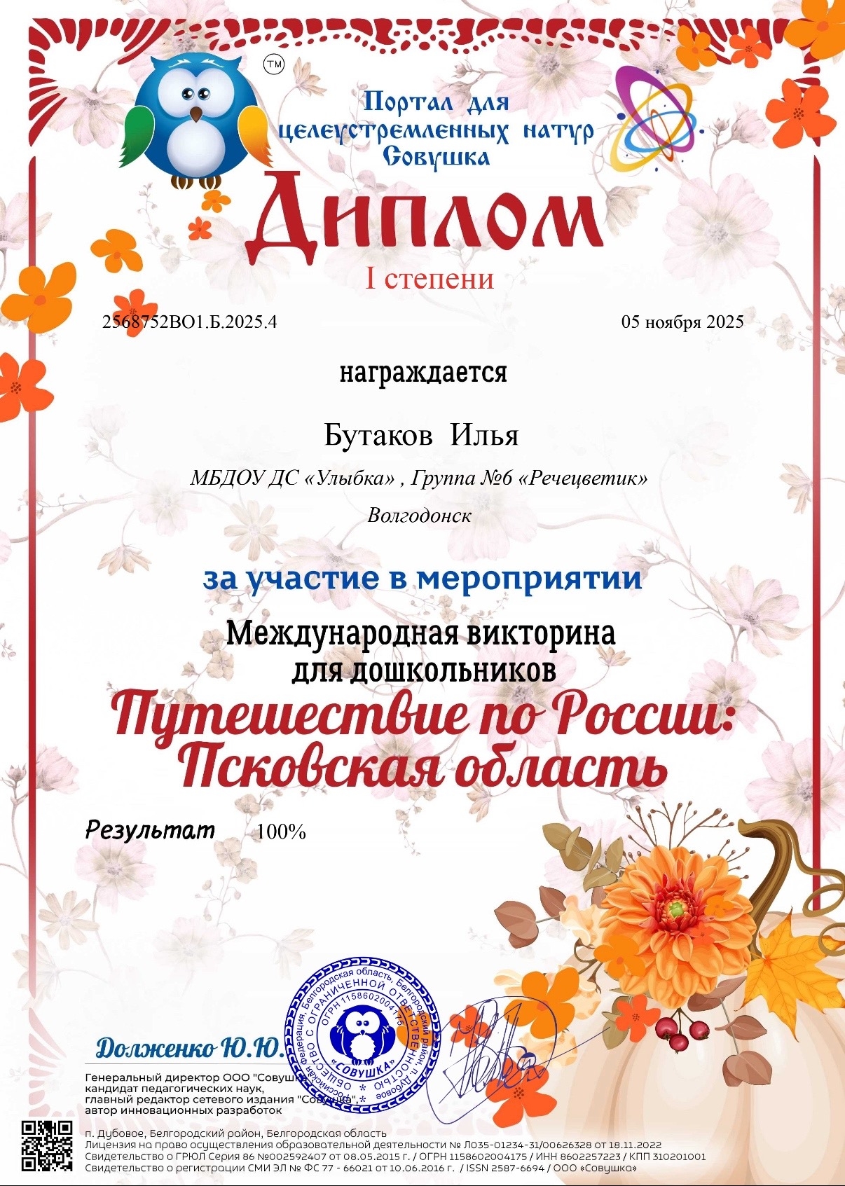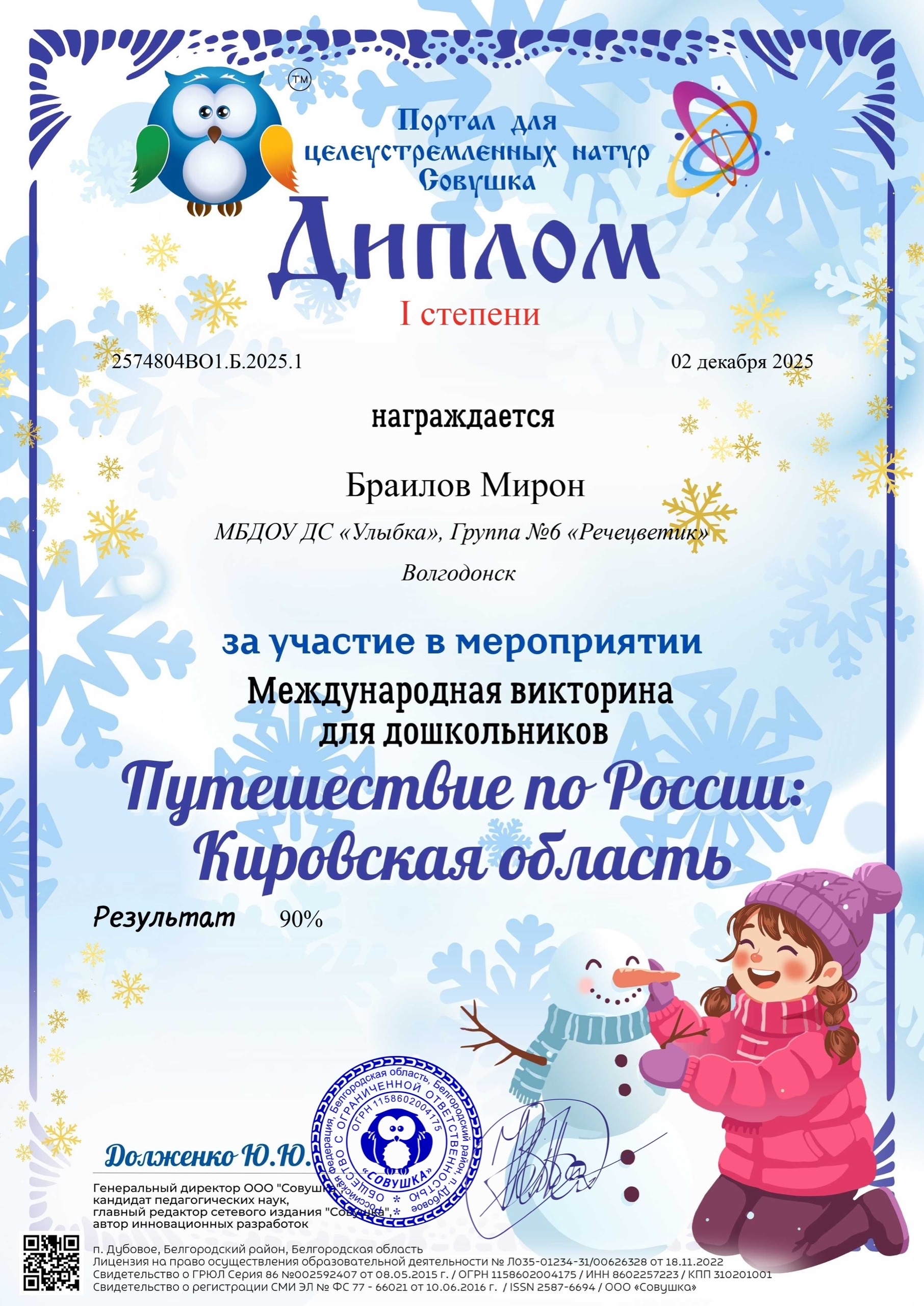 Диплом 1 степени